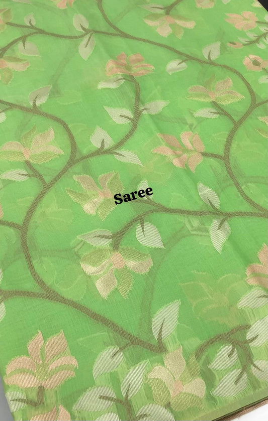 Semi Raw Silk with Jamdhani Design Weaving - Apple Green Shade - VVRS001