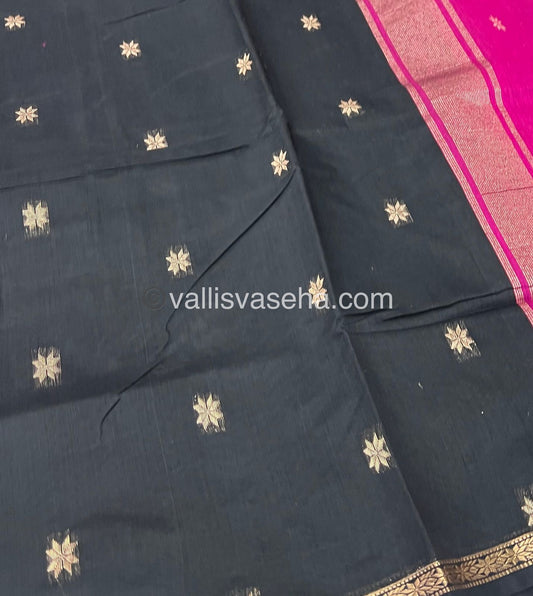 Semi Silk Cotton Saree - Navy Blue &Yellow - VVSSC001