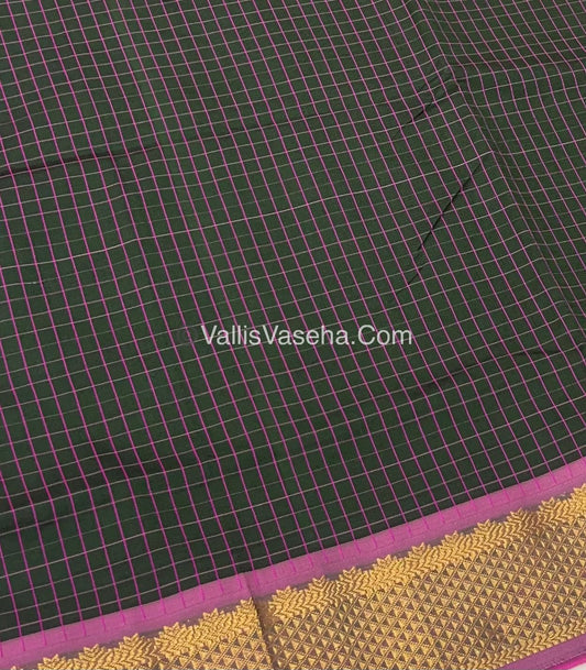 Semi Silk Cotton Saree - Dark Green With Pink Shade - VVSSC004