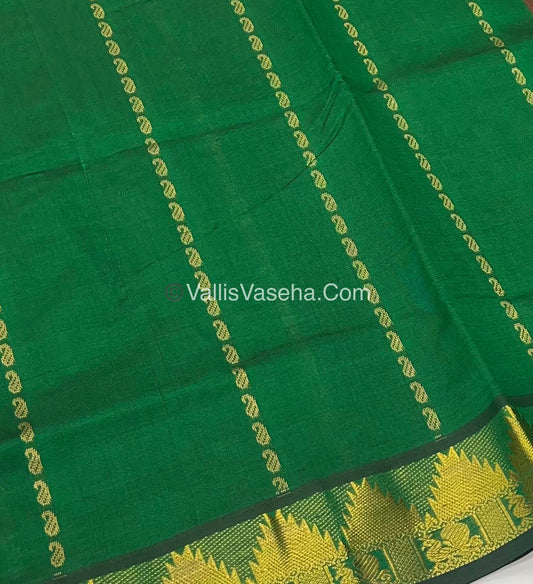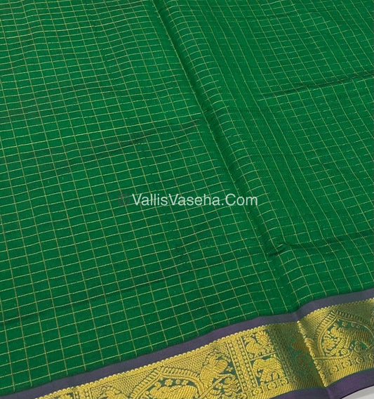 Semi Silk Cotton Saree - Ramar Green With Dark Purple Shade - VVSSC005