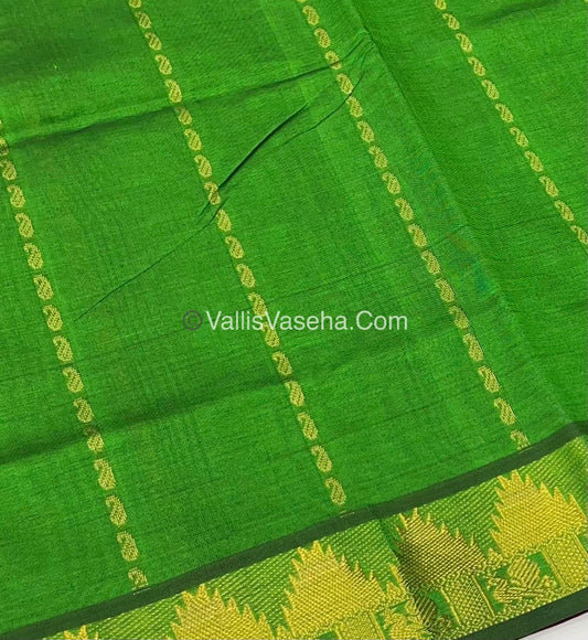 Semi Silk Cotton Saree - Ramar Green With Purple Shade - VVSSC005