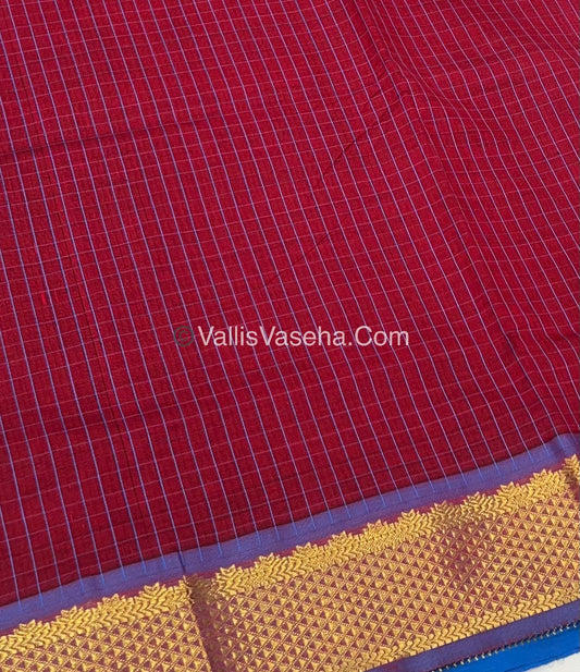 Semi Silk Cotton Saree - Red With Blue Shade - VVSSC005