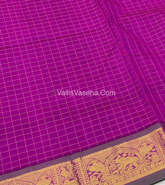 Semi Silk Cotton Saree - Pink With Dark Purple Shade - VVSSC005