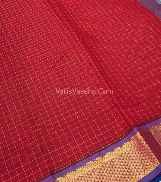 Semi Silk Cotton Saree - Purple With Red Shade - VVSSC005