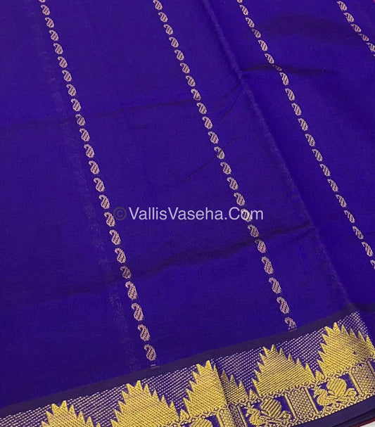 Semi Silk Cotton Saree - Blue With Maroon Shade - VVSSC005