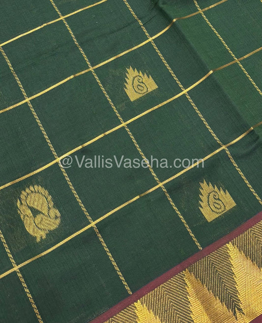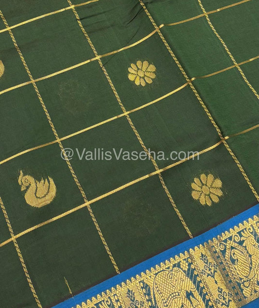 Semi Silk Cotton Saree - Dark Green with Blue shade - VVSSC002