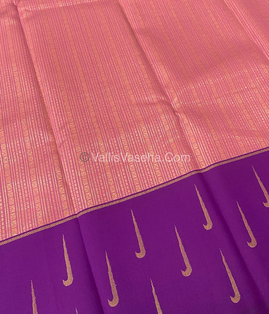Kanchi Semi Silk - Peach with Purple - VVKSS003