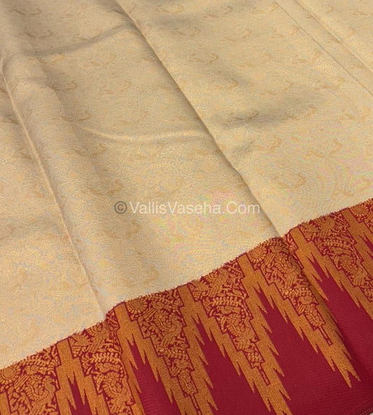 Kanchi Semi Silk - Creamish Grey with Purple - Temple Border - VVKSS003
