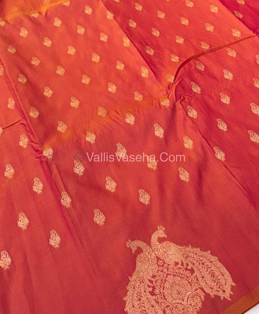 Semi Soft Silk - Deer Butta Border - Peachish Orange Shade -VVSSS017