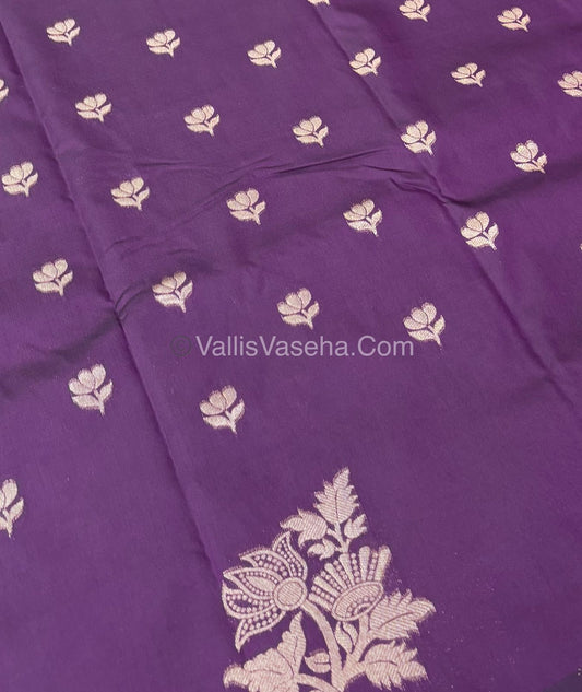 Semi Soft Silk - Peacock Butta Border - Dark Purple Shade -VVSSS011