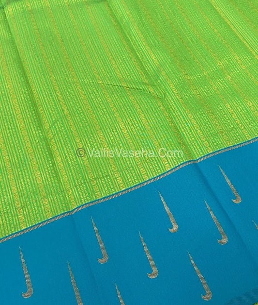 Kanchi Semi Silk - Green With Blue - Temple Border - VVKSS001