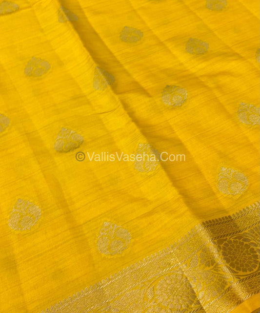 Semi Tussar Silk - Grand Pallu - Yellow Shade - VVSTS029