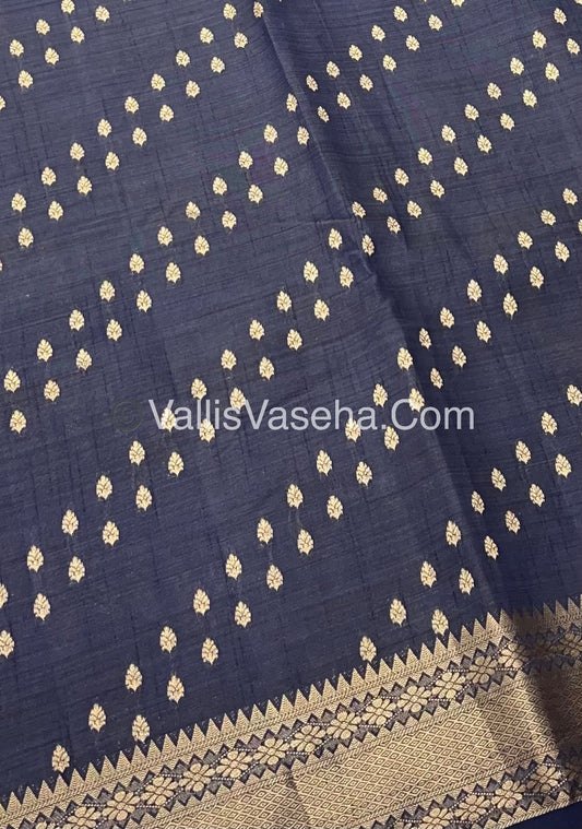 Semi Tussar Silk - Grand Pallu - Navy Blue Shade - VVSTS017