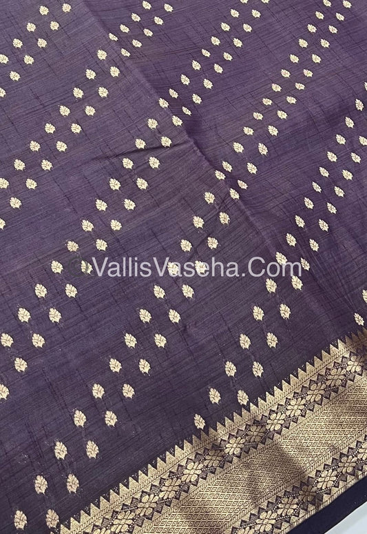 Semi Tussar Silk - Grand Pallu - Dark Purple Shade - VVSTS017