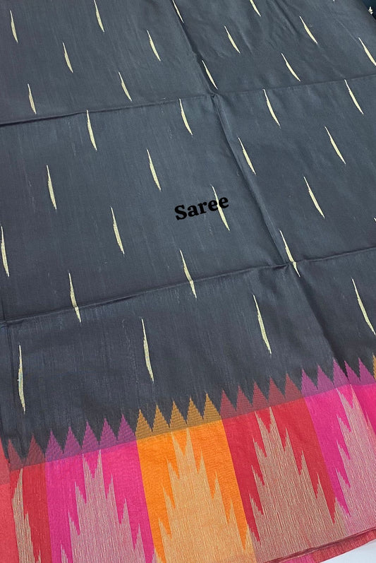Banarasi Pochampally Weaving Semi Soft Cotton Saree - Black with Purplish Pink - VVBPS001