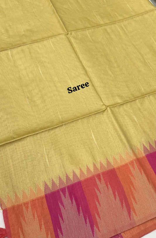 Bamboo Silk Saree - Yellow with Green Shade - VVBSS001