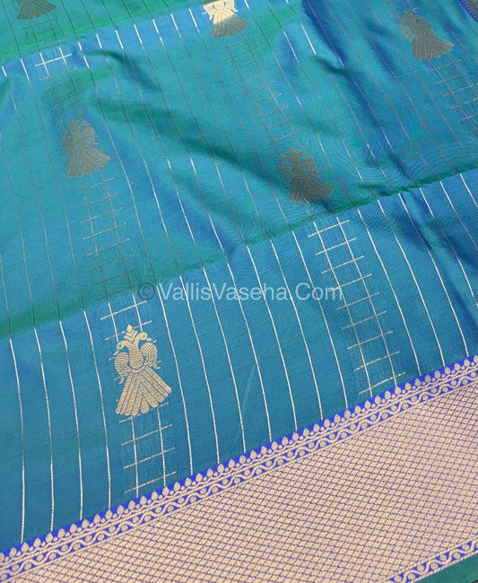Semi Soft Silk - Border less - Peacock Blue Shade -VVSSS023
