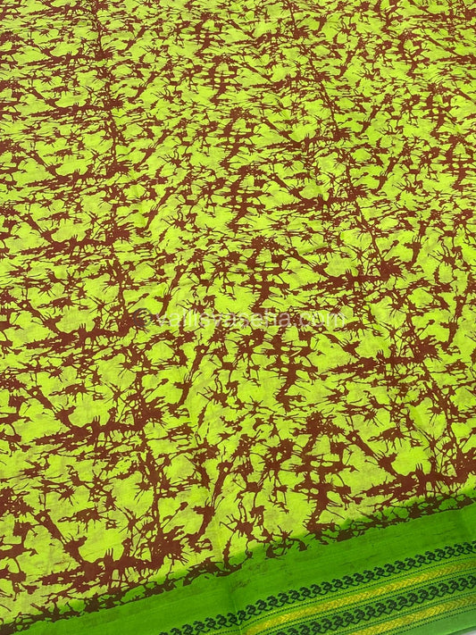 Sungudi Cotton Saree | Cloud Print - Light Green with Dark Green Shade - VVSCV004