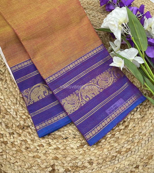 Semi Tussar - Ganga Jamuna Border - Mustard Yellow & Blue Combo - VVCS003