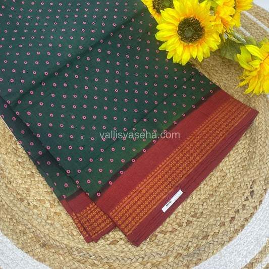 Sungudi Cotton Saree | Bandhini Design - Olive Green with maroon Shade - VVSCV003