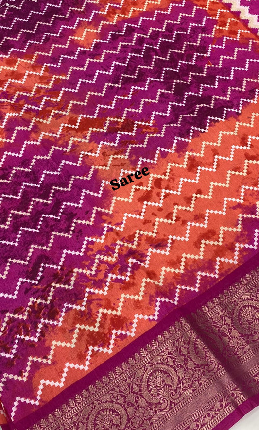 Semi Chanderi Saree - Red & Orange Combo - VVSCS003