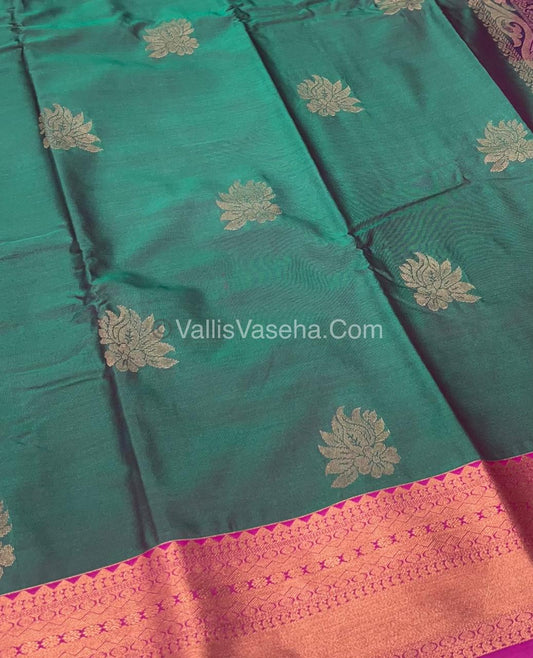 Semi Silk Cotton Saree - Dark Green & Pink - VVSSC001