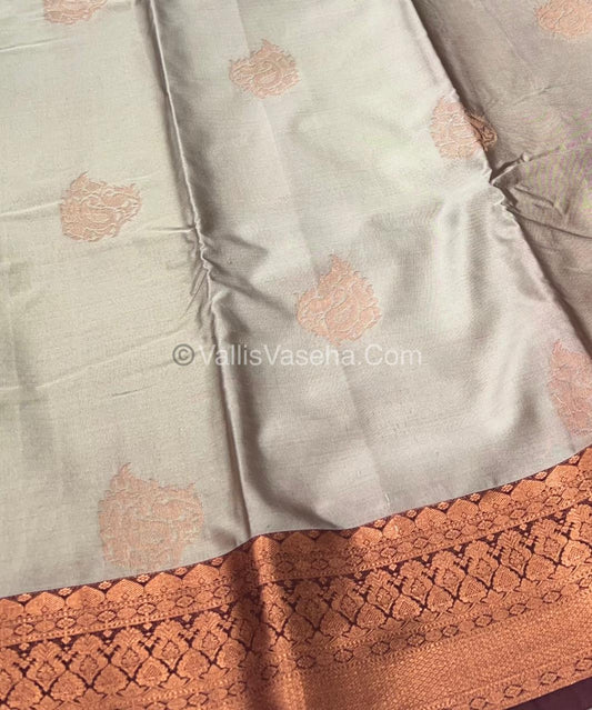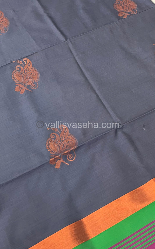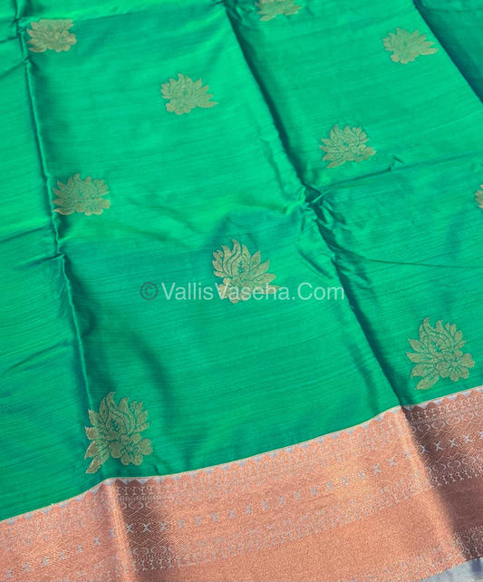 Semi Silk Cotton Saree - Dark Brown & Green - VVSSC001