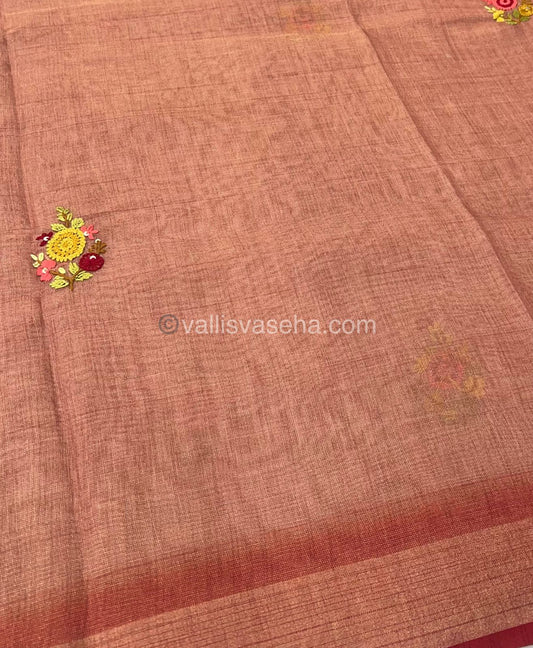French Knot - Tissue Saree - Rust Mixed Onion Pink Shade - VVLFN002