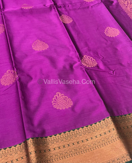 Semi Silk Cotton Saree - Dark Purple & Green Combo - VVSSC001