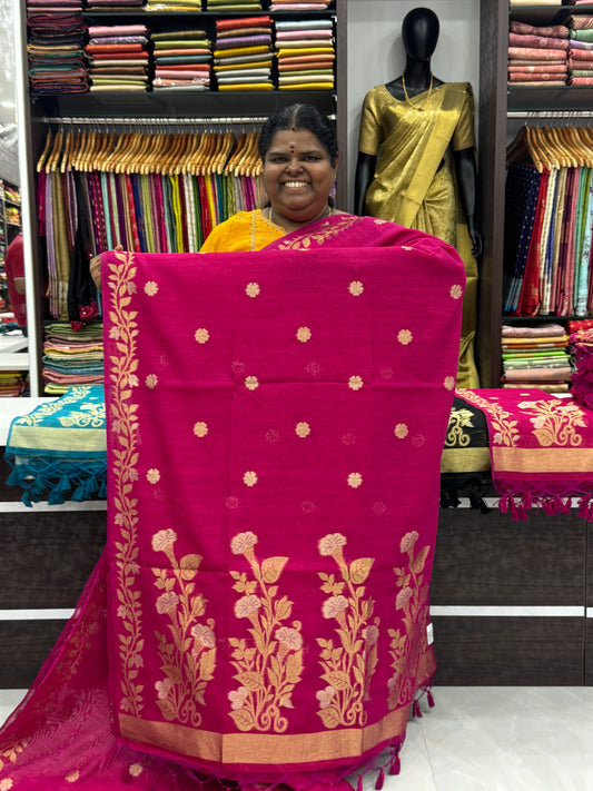 Linen Mixed Jute Silk Saree - Pink Shade - VVLMJ001