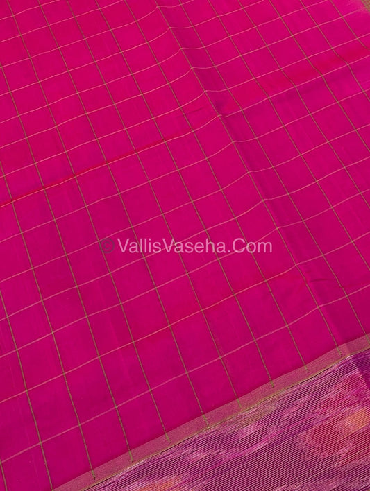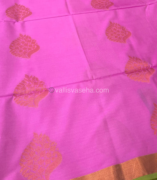 Semi Silk Cotton Saree - Pink & Green - VVSSC001