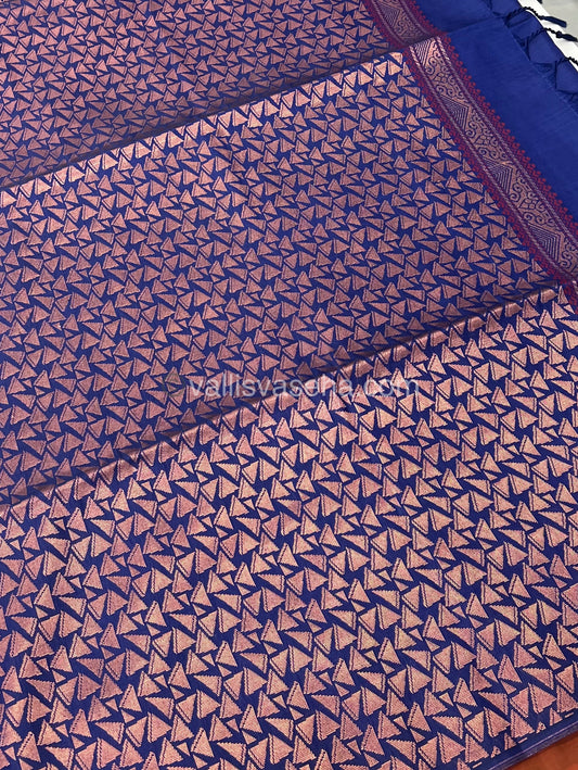 Semi Silk Cotton Saree - Ink Blue & Pink - VVSSC001