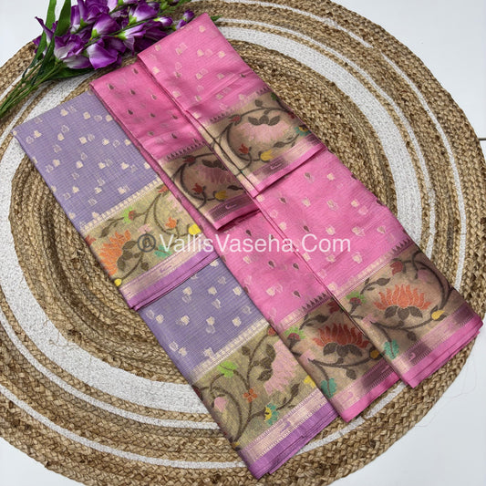 Unstitched - Lehenga Material - Zari Kota Tissue - Lavender & Pink - VVULM001