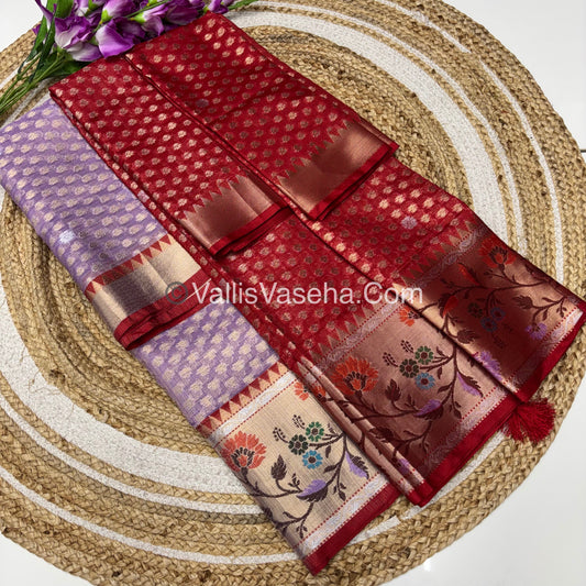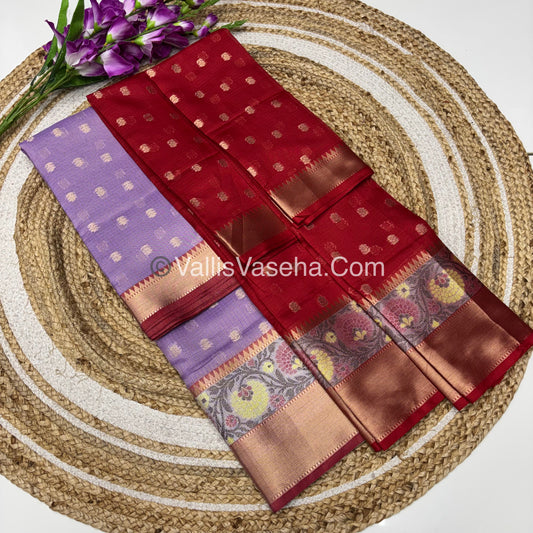 Unstitched - Lehenga Material - Zari Kota Tissue - Lavender & Red - VVULM001