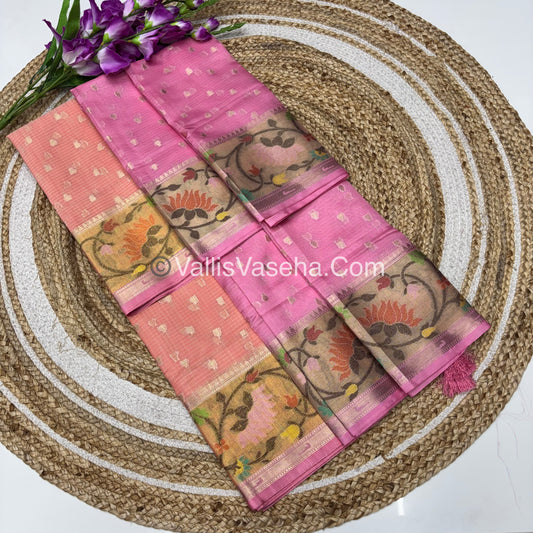 Unstitched - Lehenga Material - Zari Kota Tissue - Peach & Pink- VVULM001