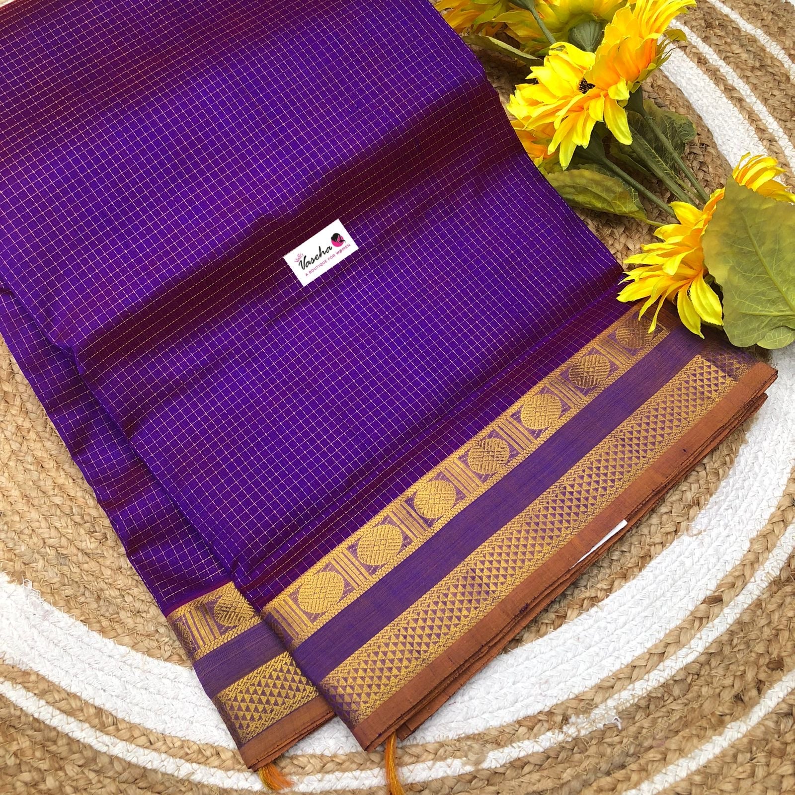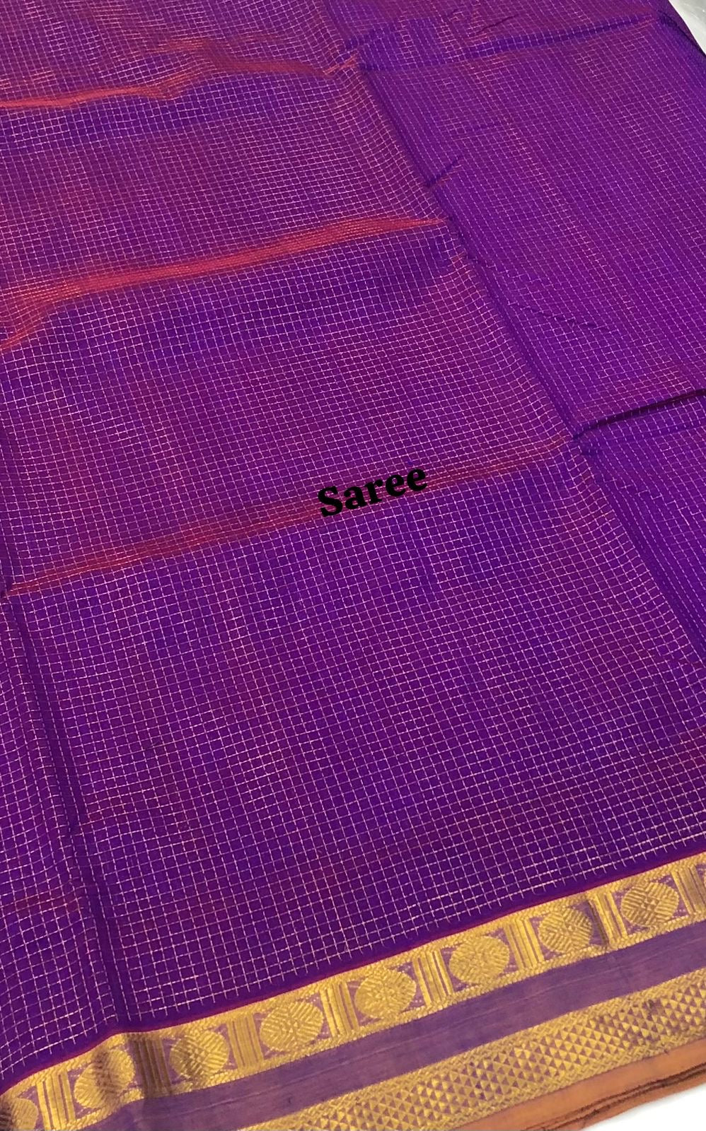 10 yards - Pure Silk Cotton Saree - All over zari checks with Retta petta Border. Pure Silk cotton sarees with 60% silk thread and 40% cotton thread , Contrast Grand pallu .