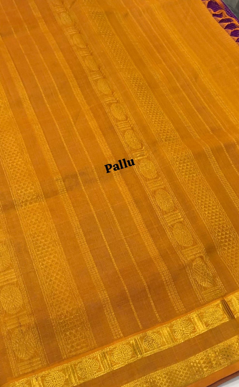 10 yards - Pure Silk Cotton - Purple With Mustard Yellow - VVTYSC001