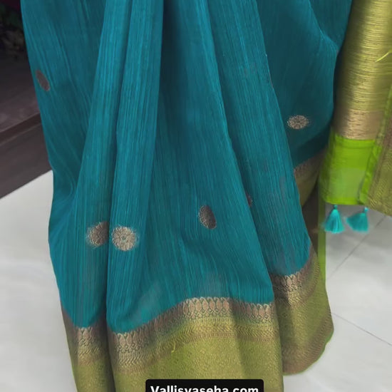 Bamboo Silk Saree - Blue With Green Shade - VVBSS001