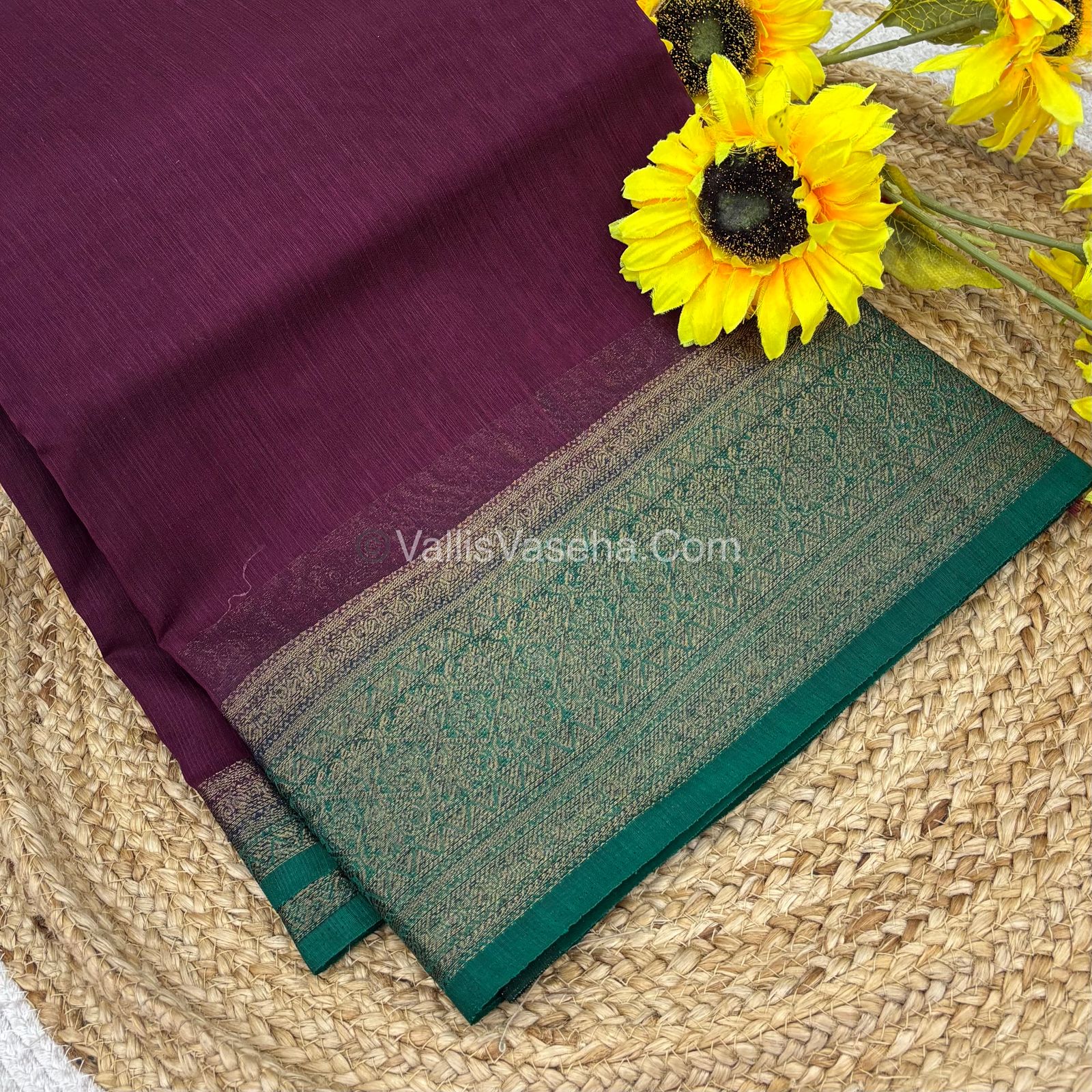 Bamboo Silk Saree - Wine With Blue Shade - VVBSS006