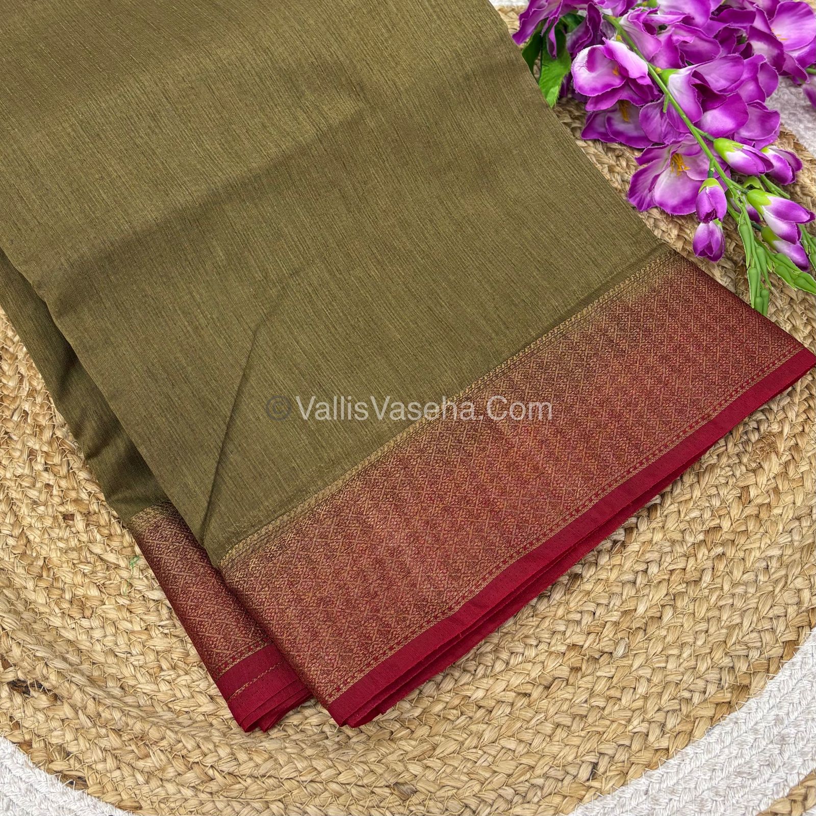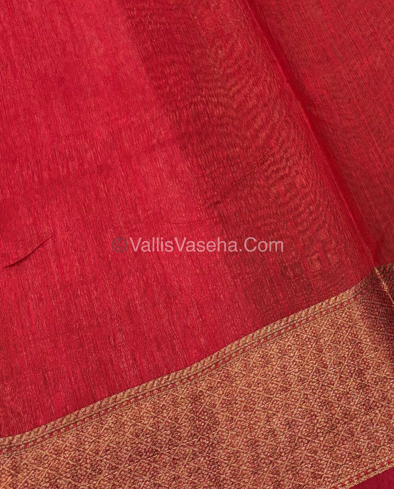 Bamboo Silk Saree - Chiku With Red Shade - VVBSS002