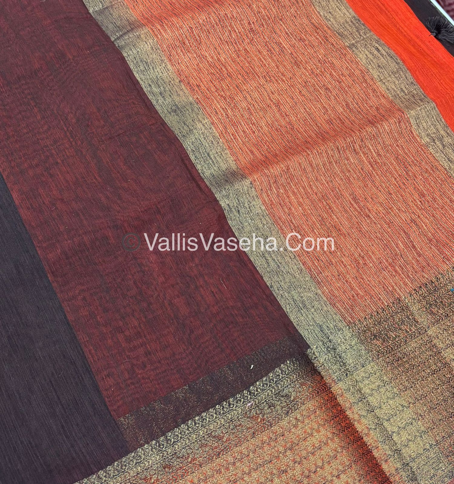 Bamboo Silk Saree - Coffee Brown With Orange Shade - VVBSS003