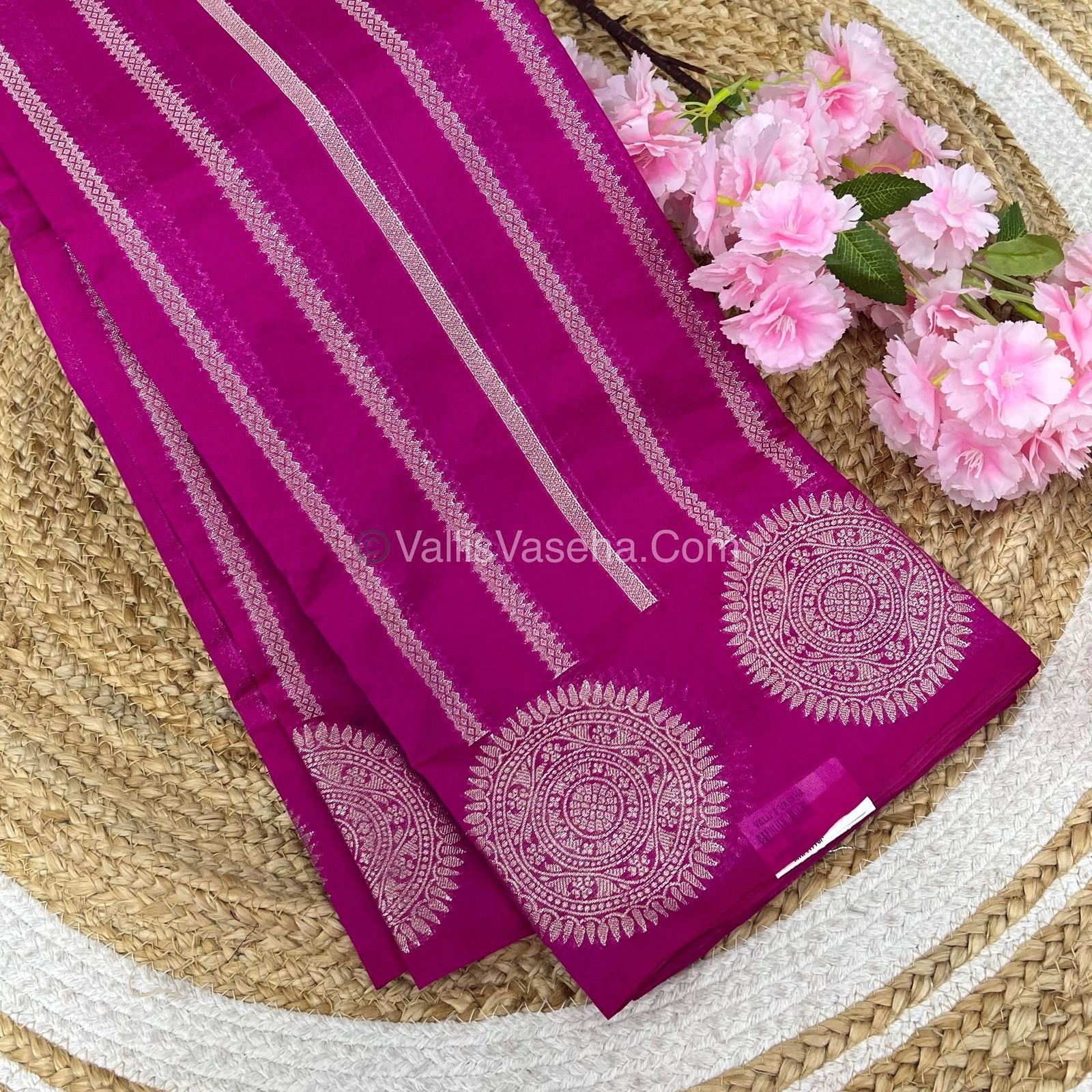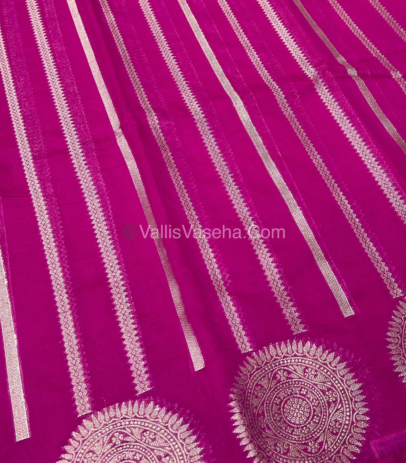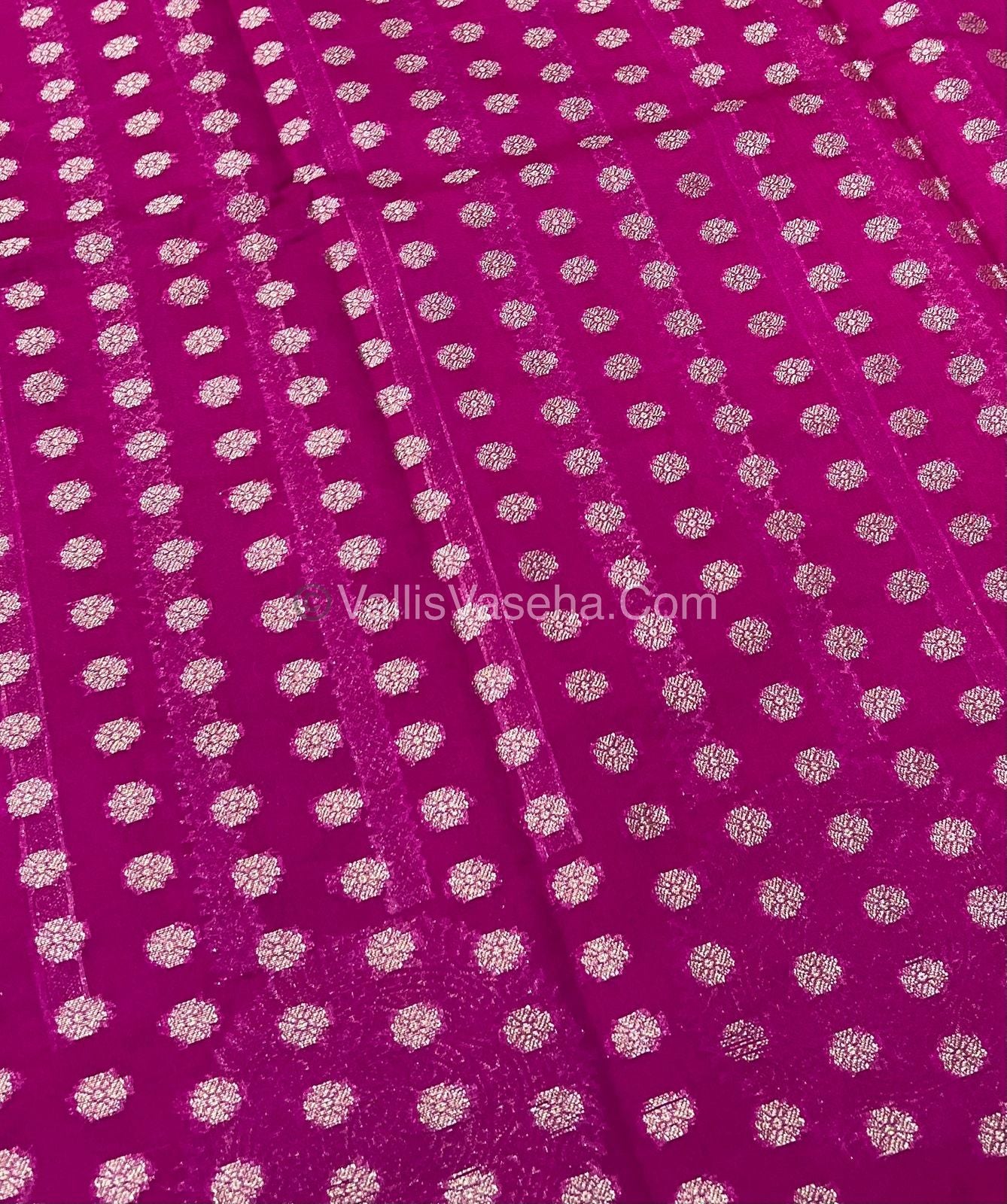 Banarasi Georgette Saree - All over Silver Zari Vertical Lines design with Zari Thread Round Butta border with rich Pallu and butta blouse.