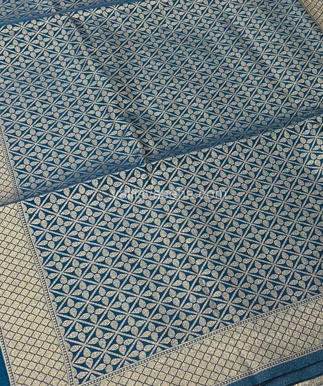 Stunning Banarasi heritage Silk - Semi Kathan variety - All over Small Leaf Butta weaving design with beautiful weaving Zari border with rich pallu with tassels and small Zari design borderin sleeves for blouse .