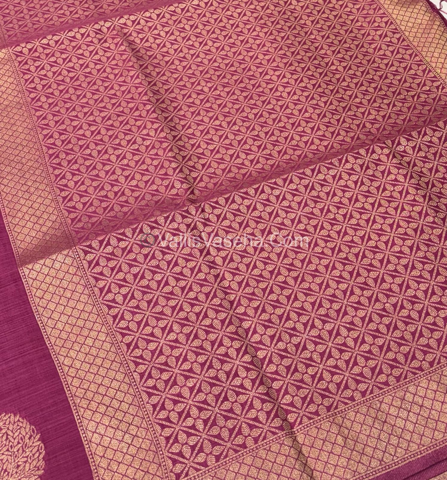 Stunning Banarasi heritage Silk - Semi Kathan variety - All over Small Leaf Butta weaving design with beautiful weaving Zari border with rich pallu with tassels and small Zari design borderin sleeves for blouse .