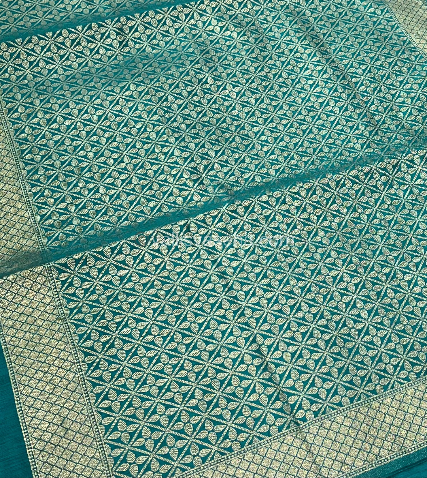 Stunning Banarasi heritage Silk - Semi Kathan variety - All over Small Leaf Butta weaving design with beautiful weaving Zari border with  rich pallu with tassels and  small Zari design borderin sleeves for blouse .