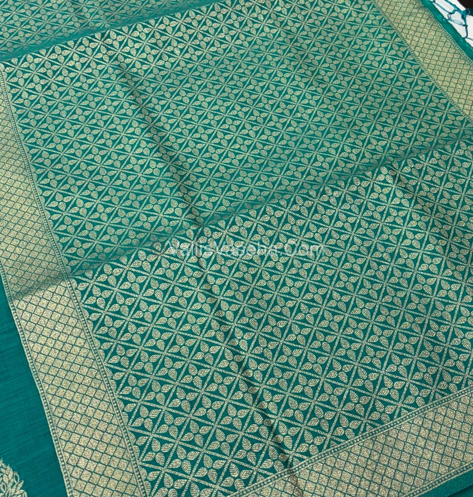 Stunning Banarasi heritage Silk - Semi Kathan variety - All over Small Leaf Butta weaving design with beautiful weaving Zari border with rich pallu with tassels and small Zari design borderin sleeves for blouse .