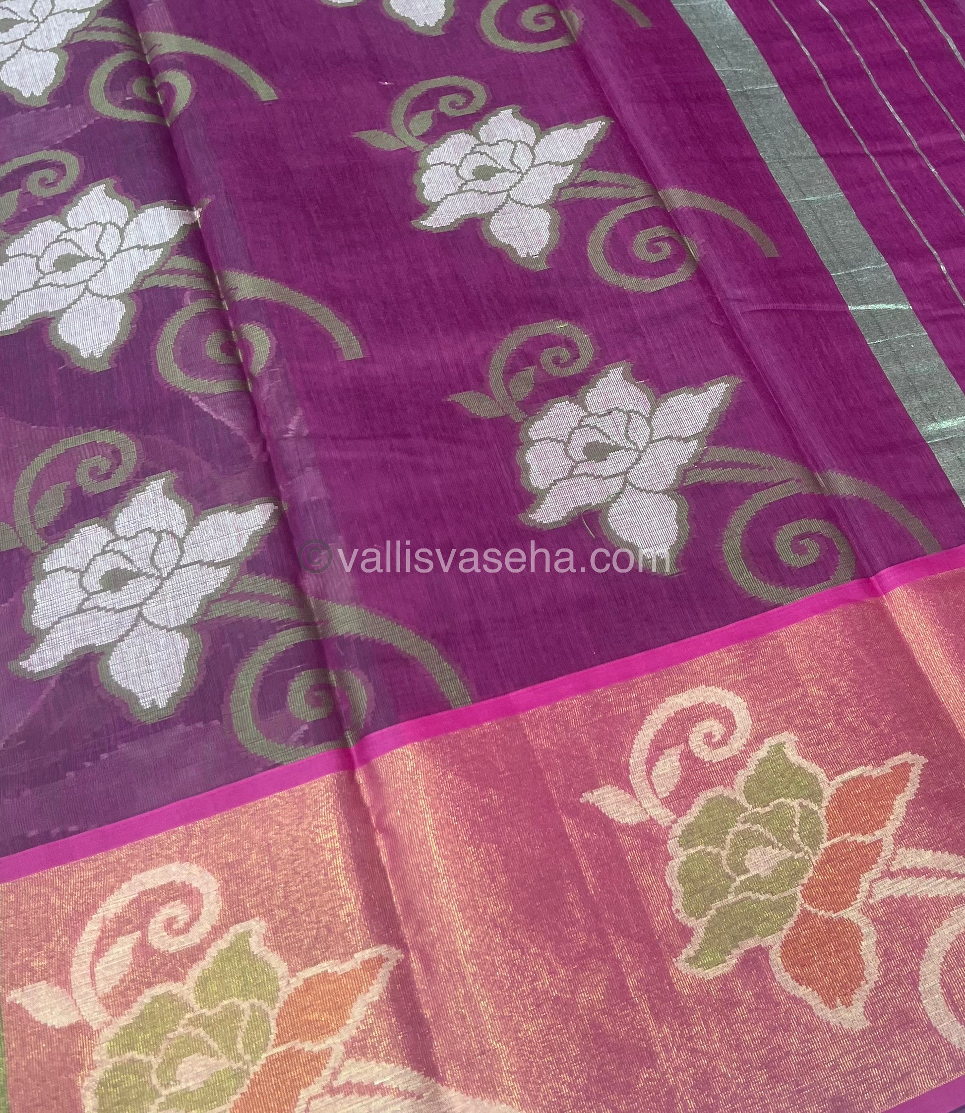 Banarasi Pochampally Weaving Semi Soft Cotton Saree - Green With Purplish Pink - VVBPS001