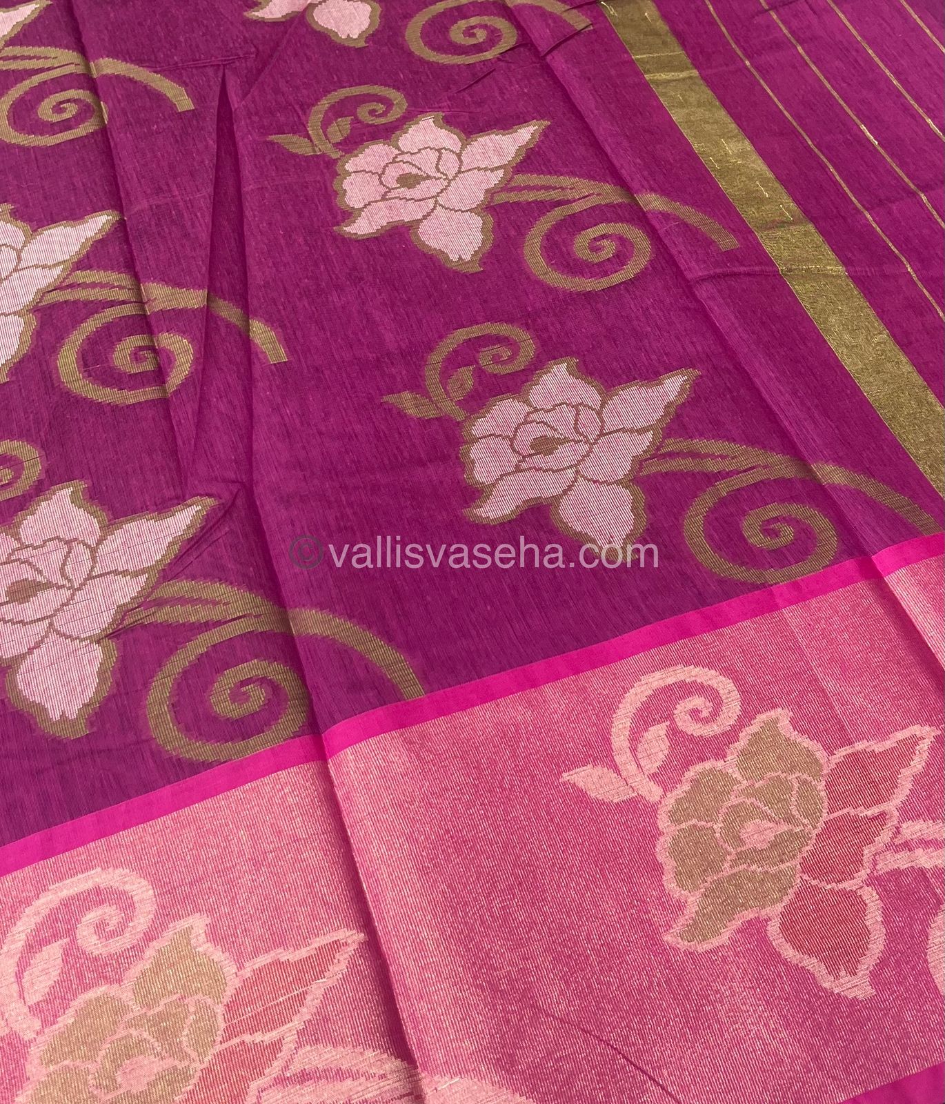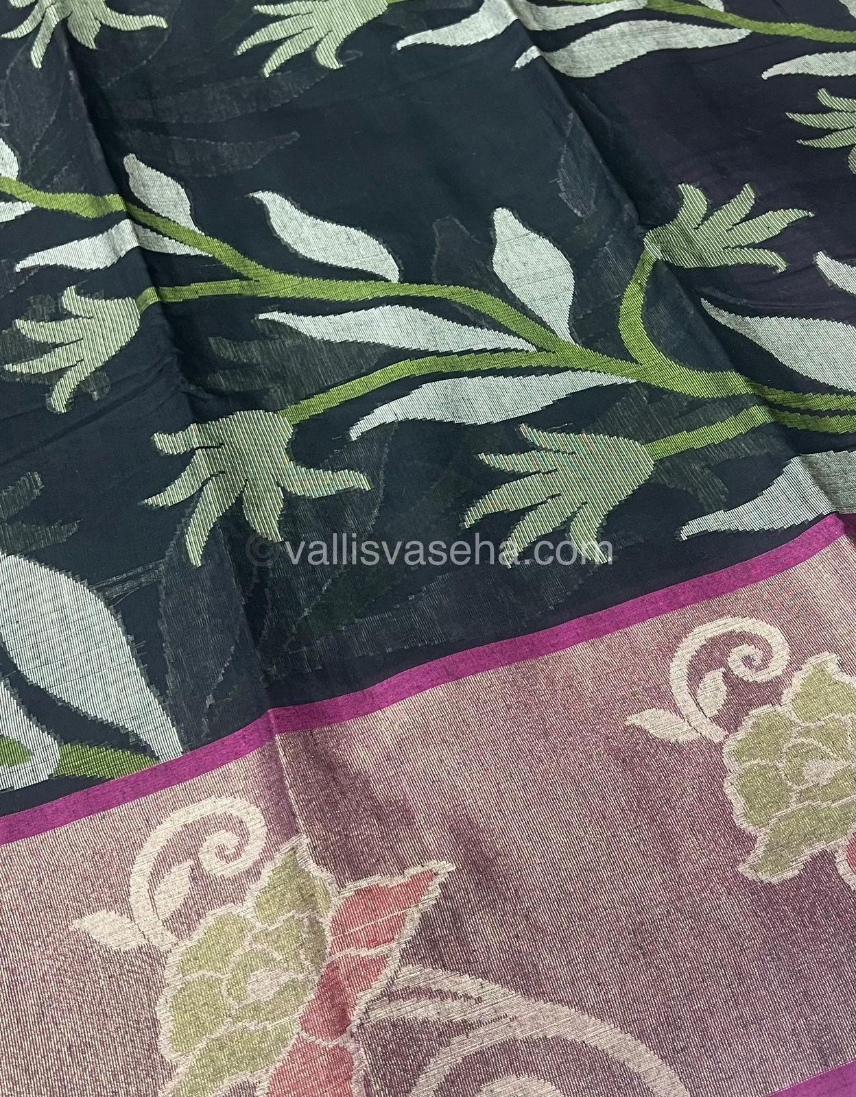 Banarasi Pochampally Weaving Semi Soft Cotton Saree - Black with Purplish Pink - VVBPS001