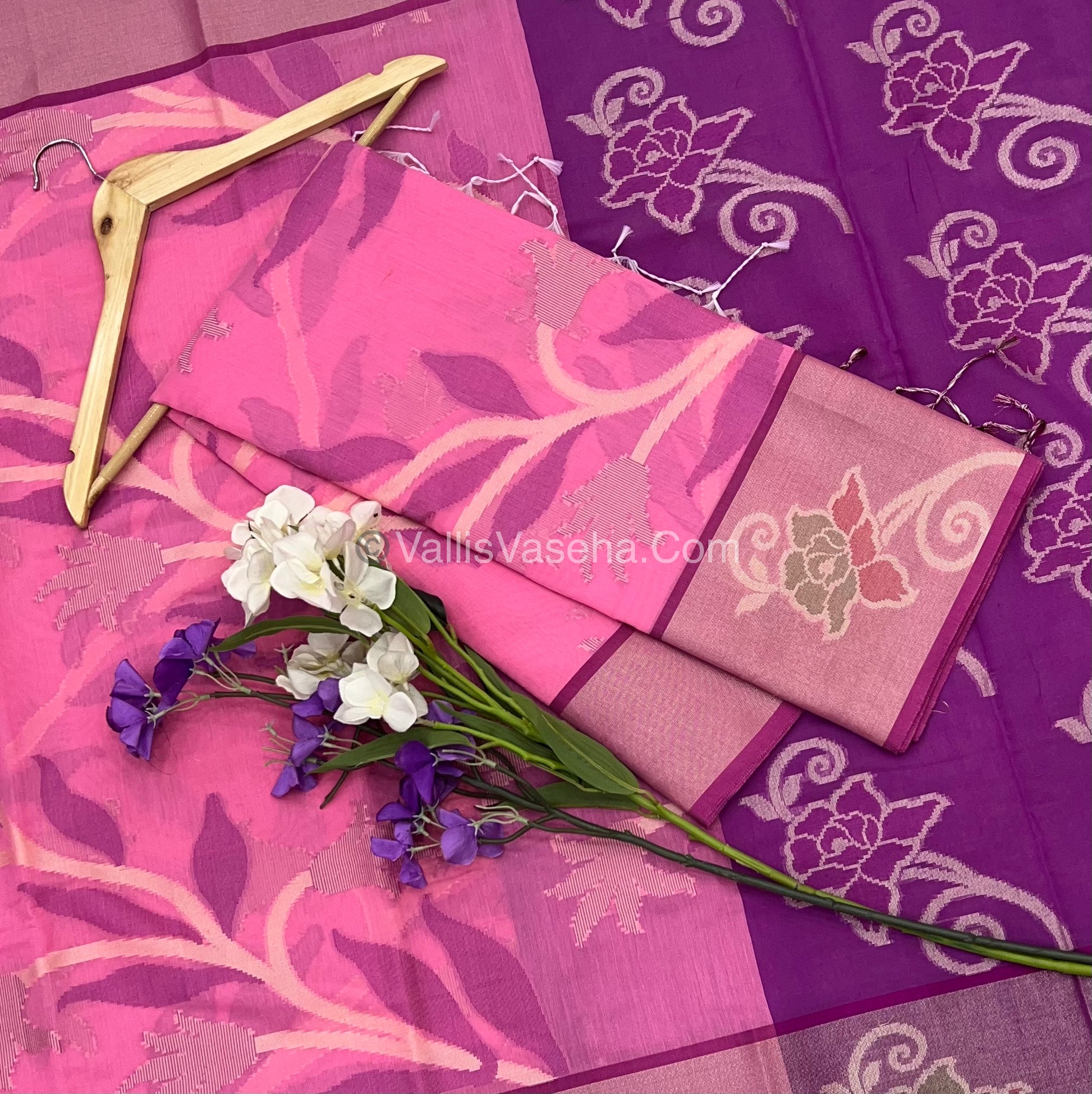 Banarasi Pochampally Weaving Semi Soft Cotton Saree - Light Pink - VVBPS001