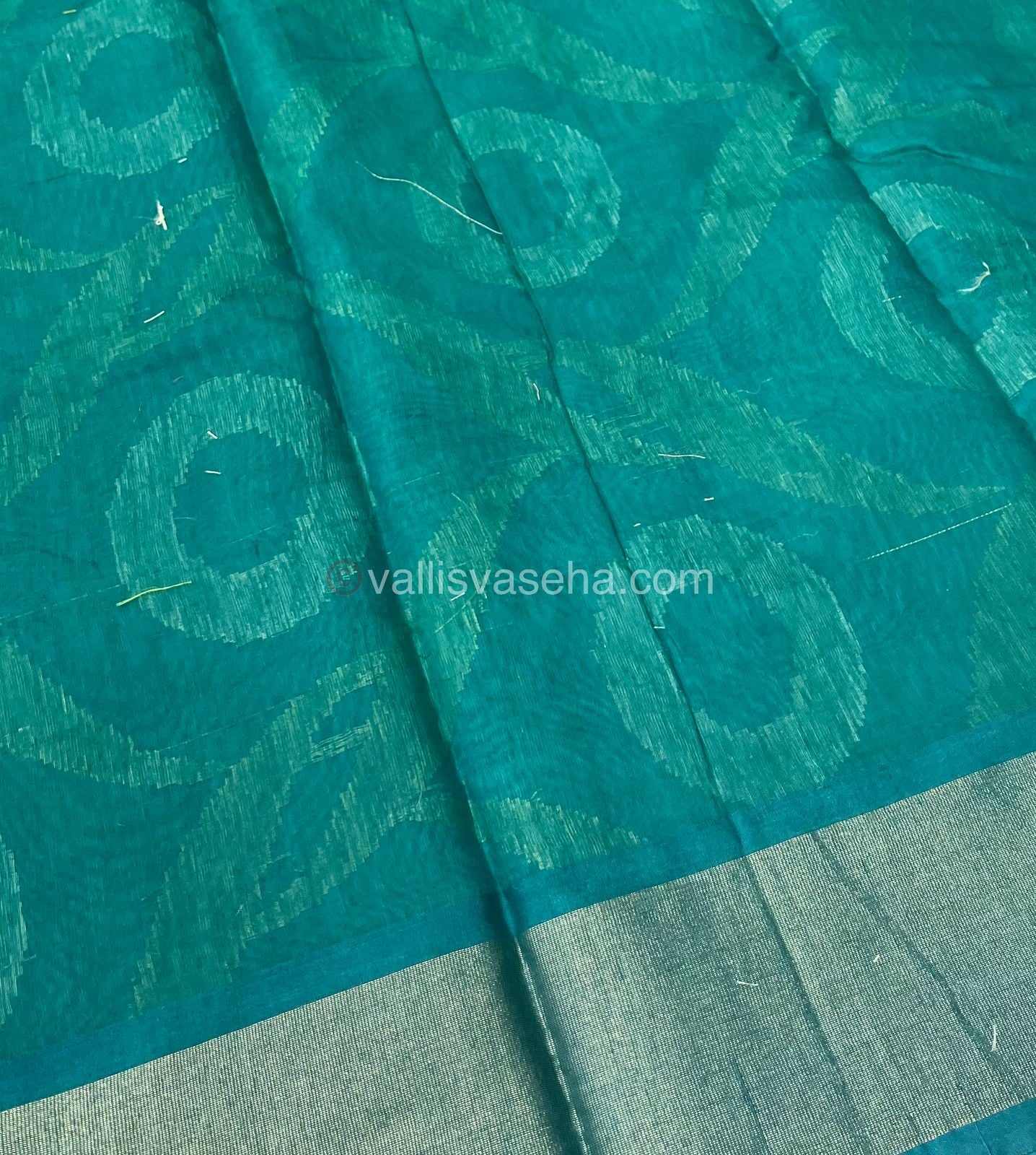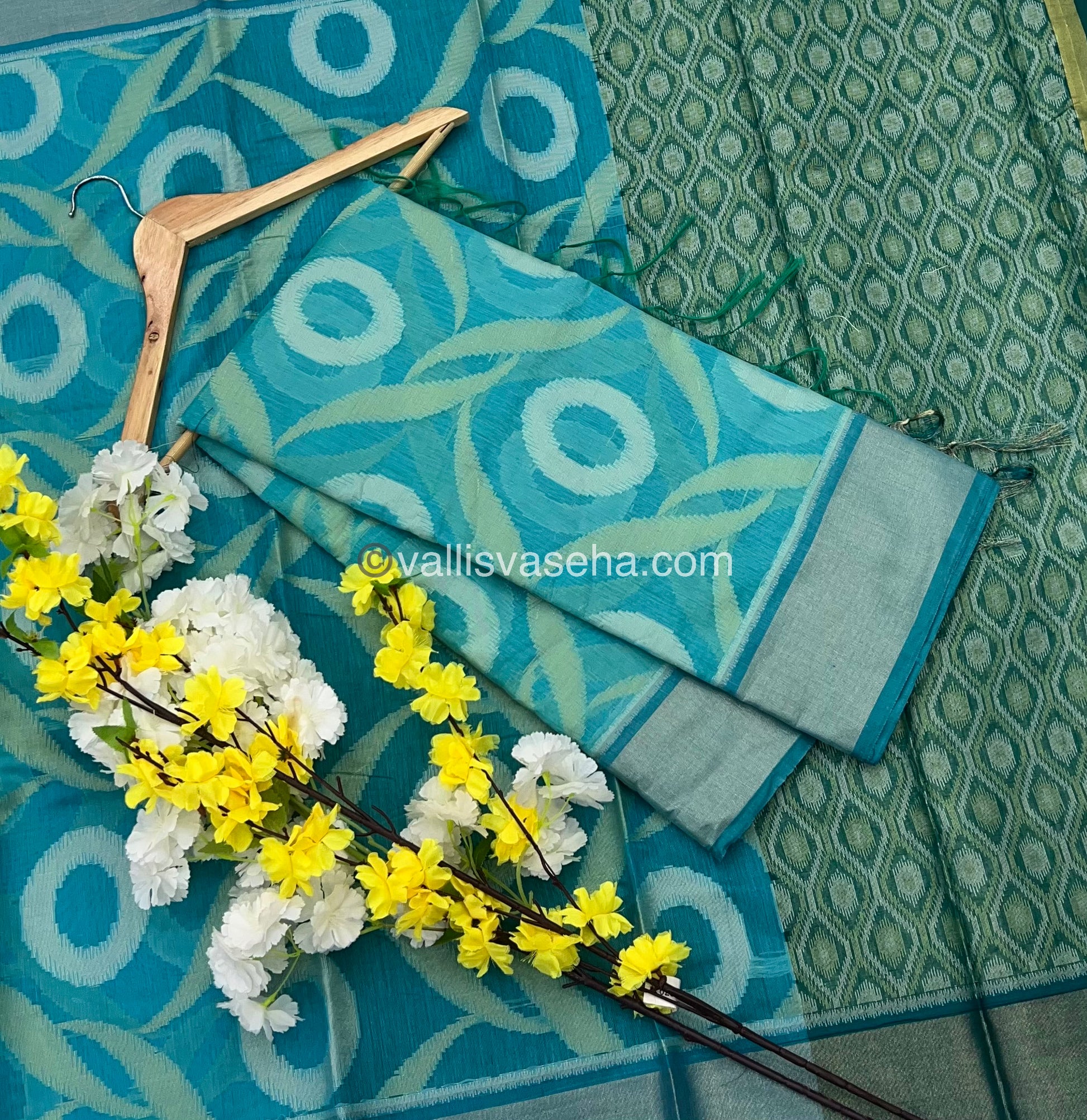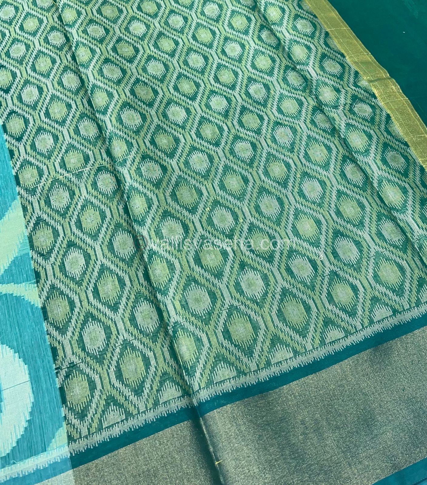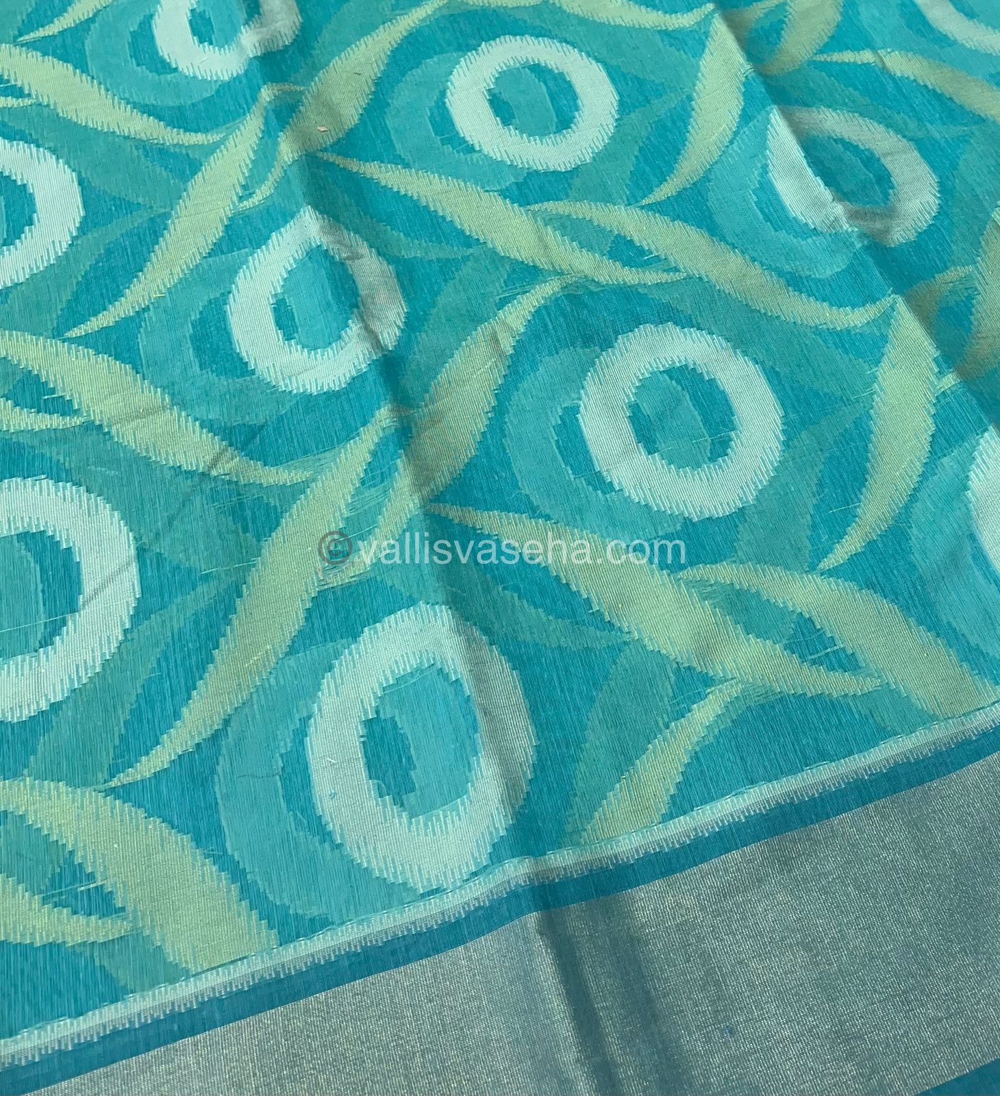 Banarasi Pochampally Weaving Semi Soft Cotton Saree - Blue with Ramar Green - VVBPS001